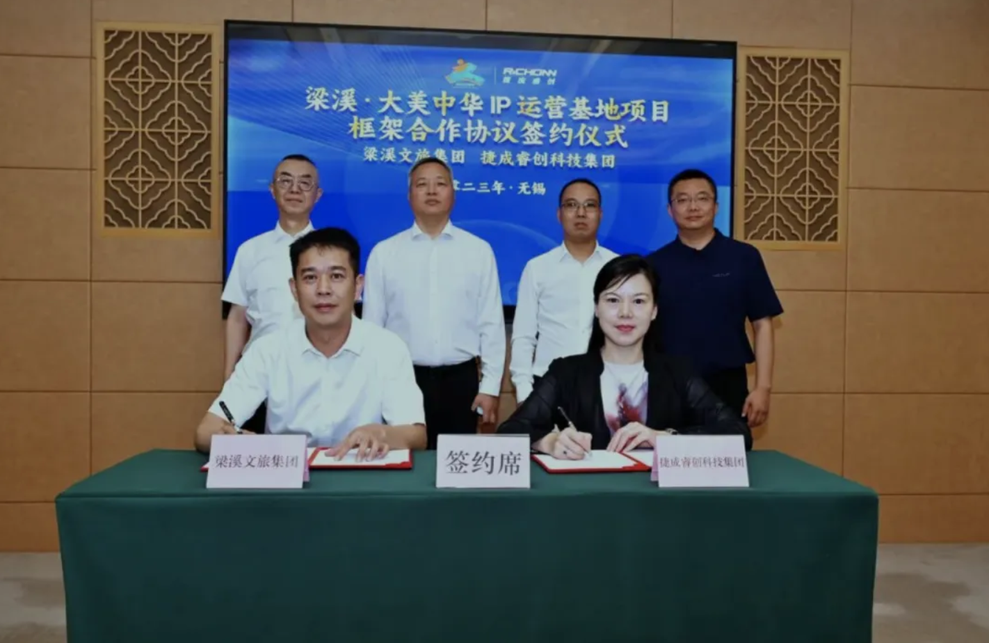 6月26日下午,梁溪文旅集团与江苏捷成睿创科技发展有限公司(以下简称“江苏捷成”)签订战略协议,全力打造梁溪·大美中华IP运营基地项目。